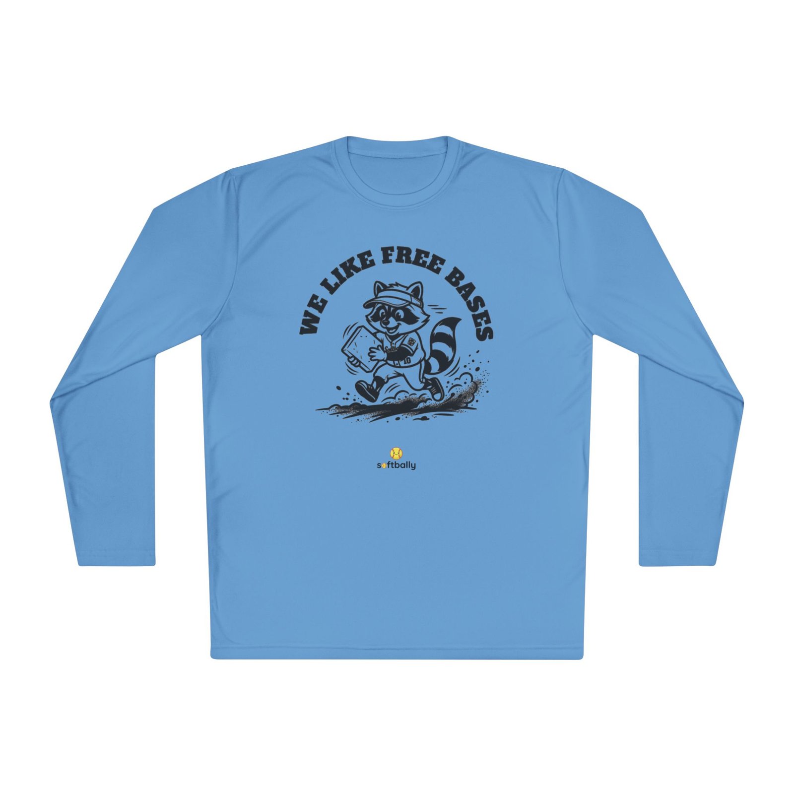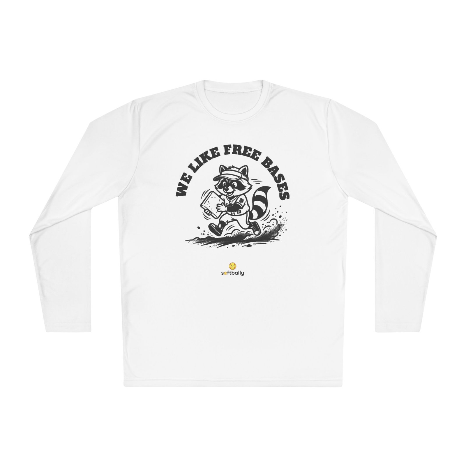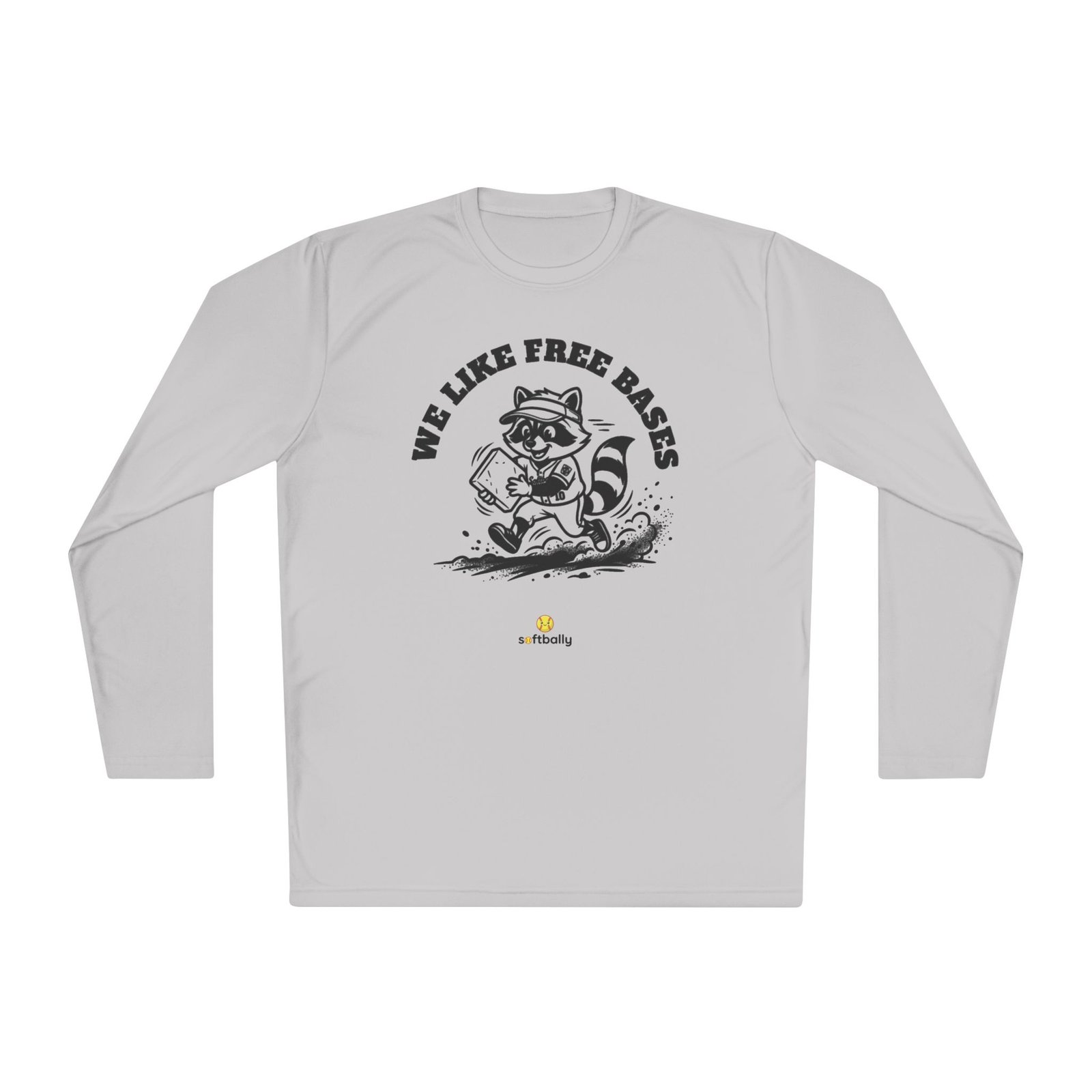 Moisture Wicking Softball Playing Raccoon Long Sleeve Tee – We Like Free Bases