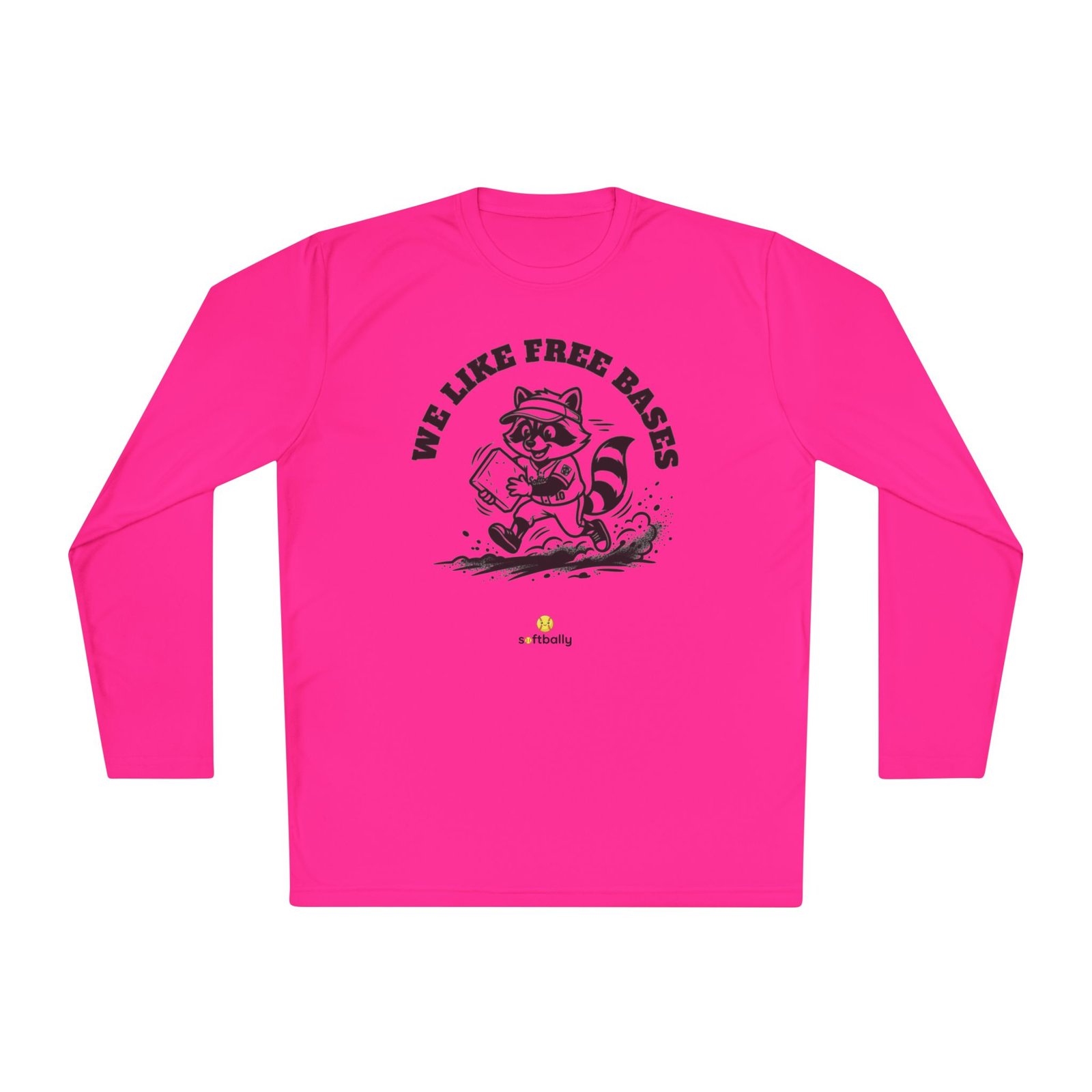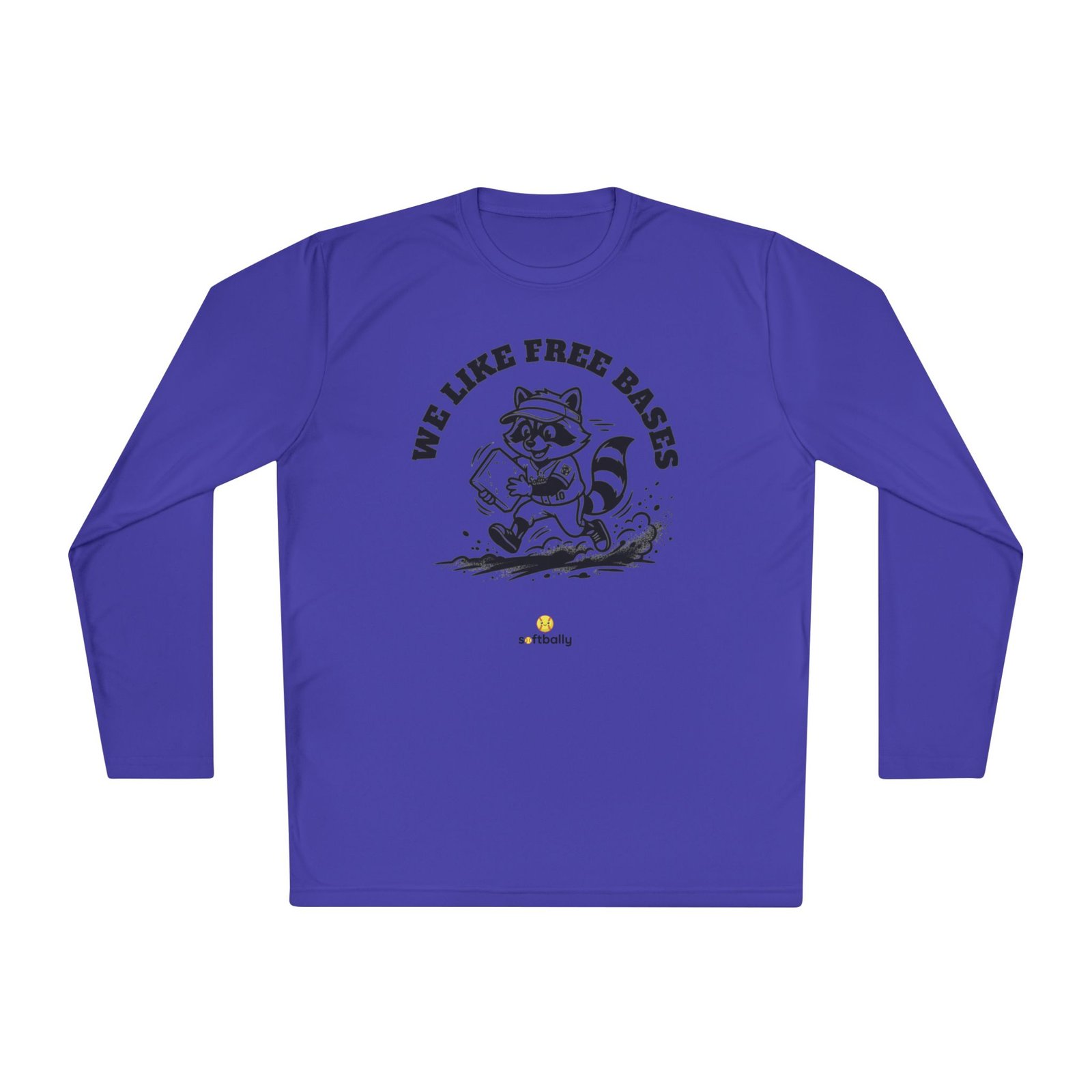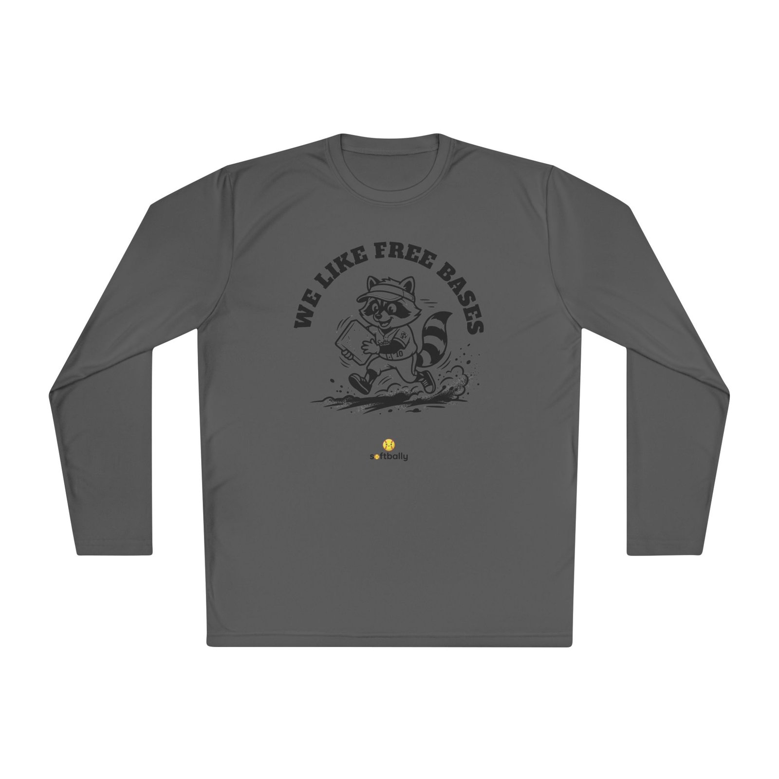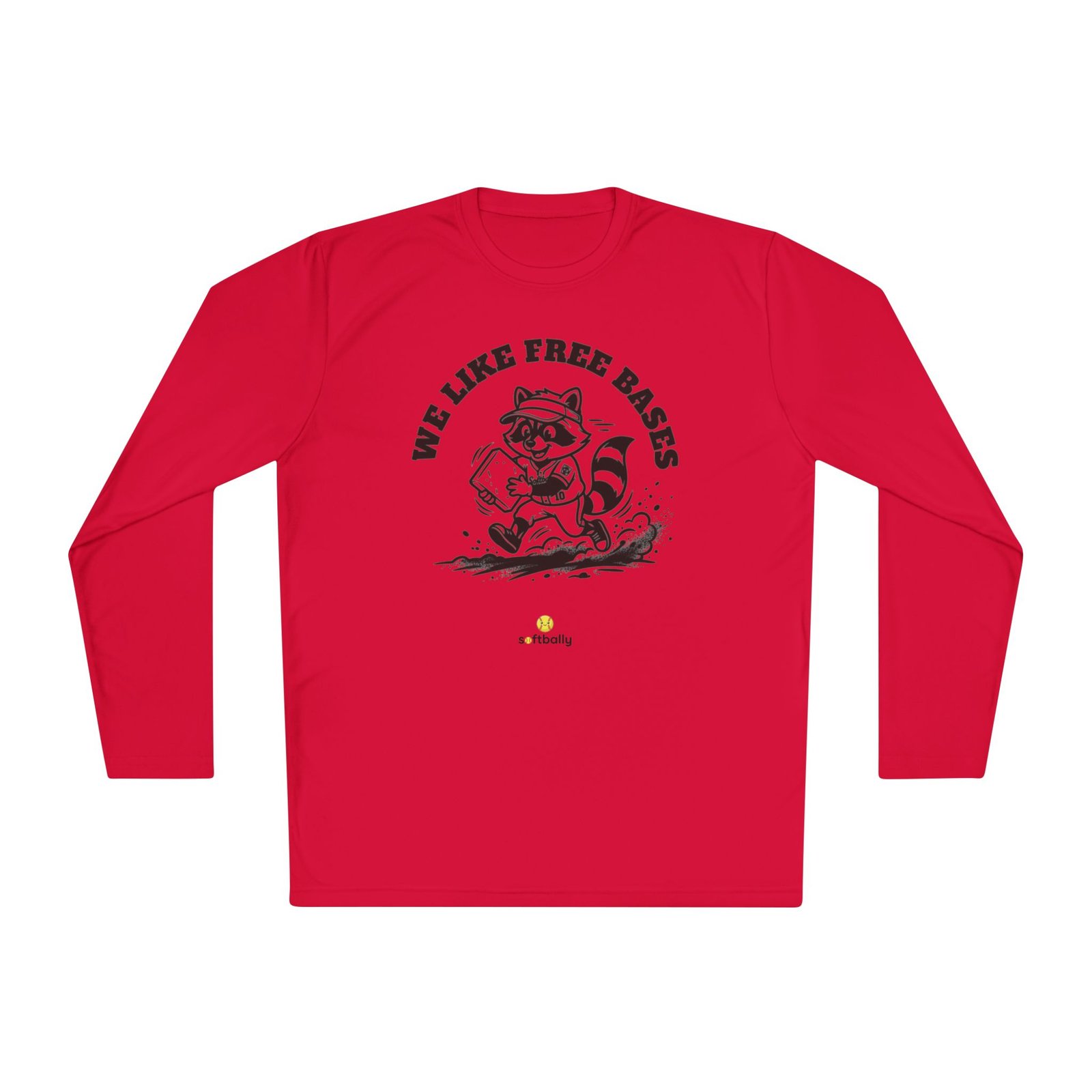 Moisture Wicking Softball Playing Raccoon Long Sleeve Tee – We Like Free Bases