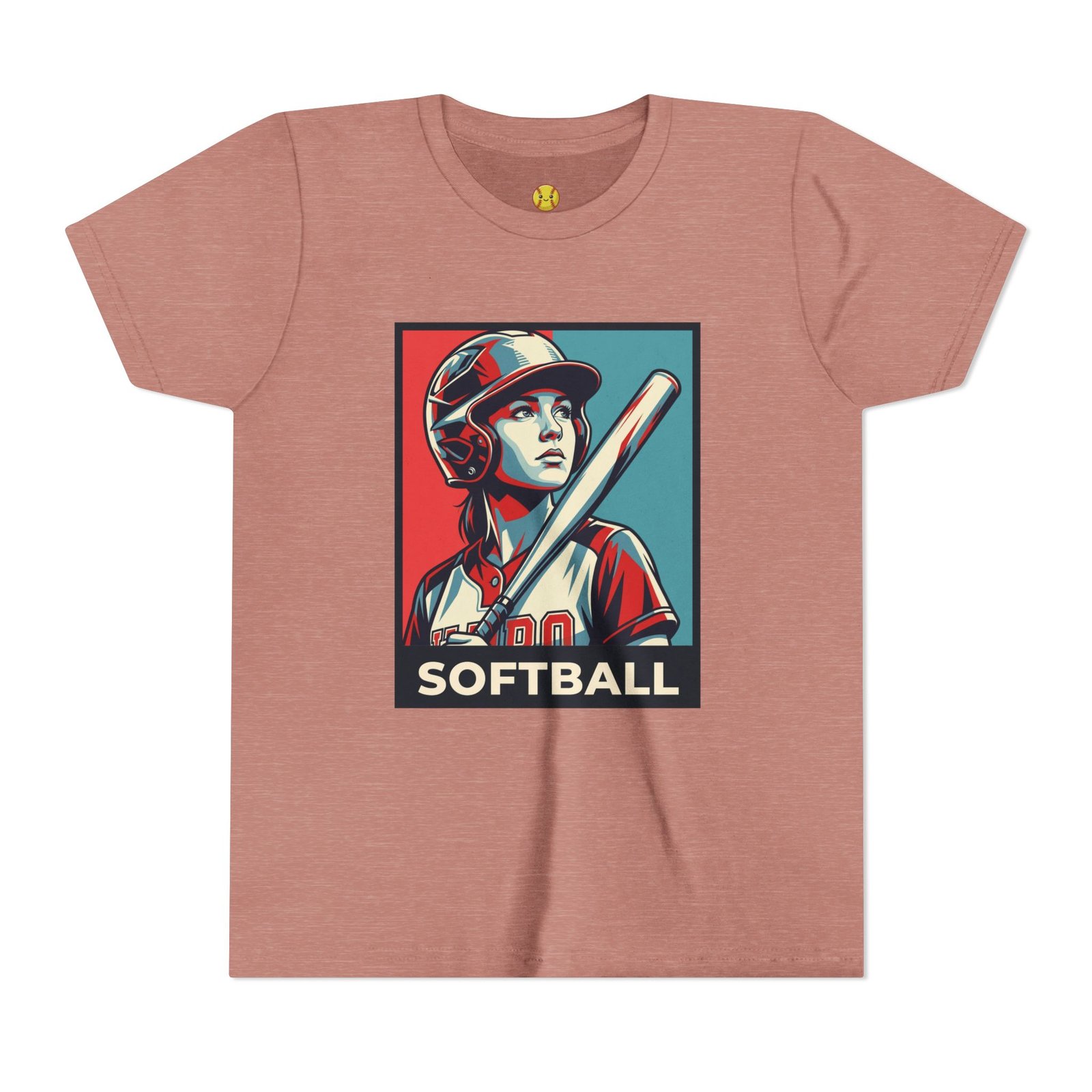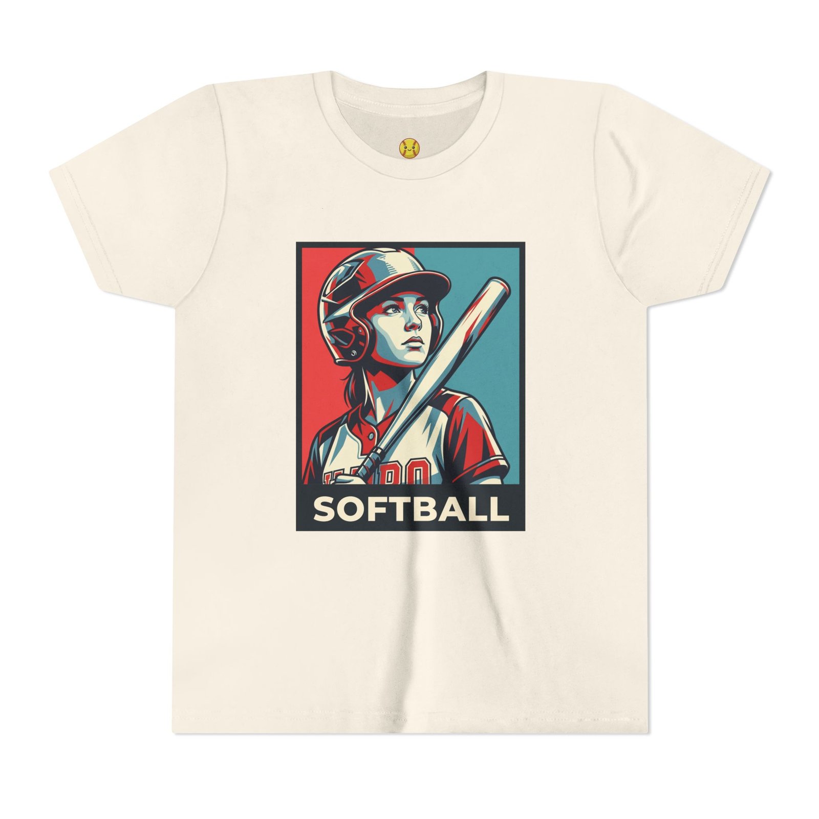 Lightweight, breathable, and proudly athletic — this soft crewneck tee carries a bold, vintage-style softball graphic that reads like a poster from a hometown field. The artwork centers a determined batter in helmet and uniform, rendered in high-contrast, posterized tones that pop against the tee’s gentle base color. Wear it to practice, on game day, or around town to signal your connection to the sport. The retail cut keeps the silhouette neat for layering under jackets or pairing with relaxed jeans. Thoughtful details like a ribbed knit collar, shoulder tape and side seams keep the shape game-ready after repeat wear. Ethically produced and REACH certified, it balances performance with conscience.