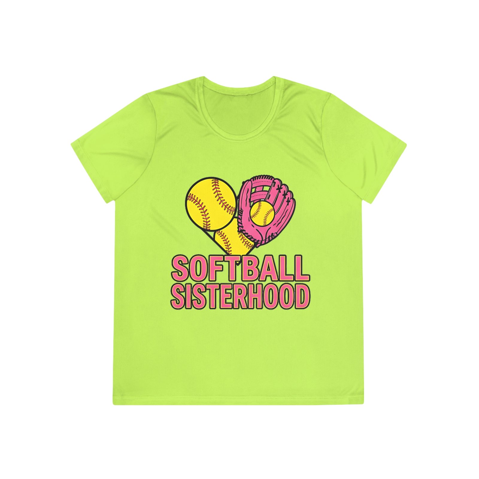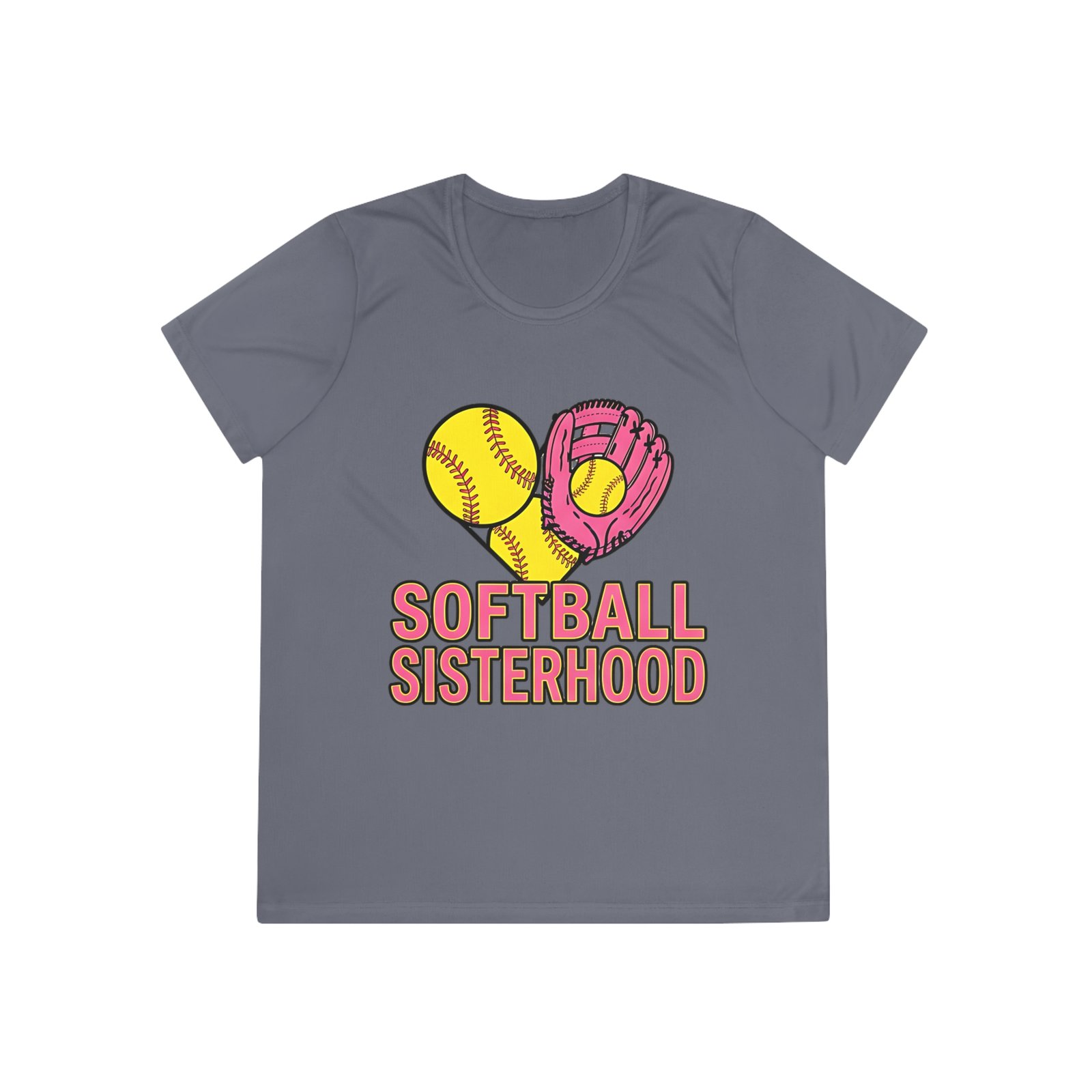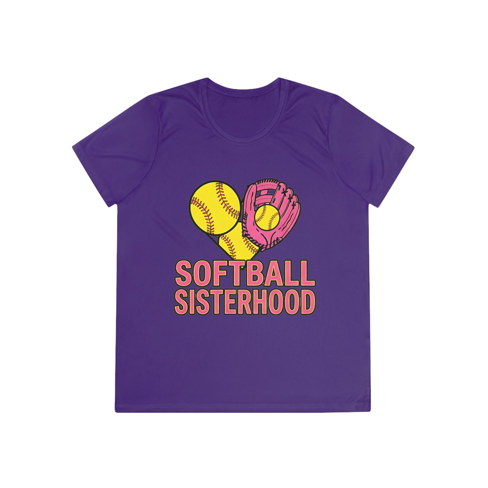 Softball Sisterhood tee built for motion and moments that matter. Lightweight, feminine-cut, and moisture-wicking, this shirt moves with you from warmups to post-game laughs. The playful graphic—softball and glove forming a heart above bold “Softball Sisterhood” lettering—carries the team spirit without shouting. Wear it to practices, weekend tournaments, or casual meetups with teammates. The extra-light fabric keeps you cool during drills; the tear-away label and feminine fit make it comfortable on and off the field. It’s the kind of top you reach for when you want to feel connected to your squad and confident in your game.