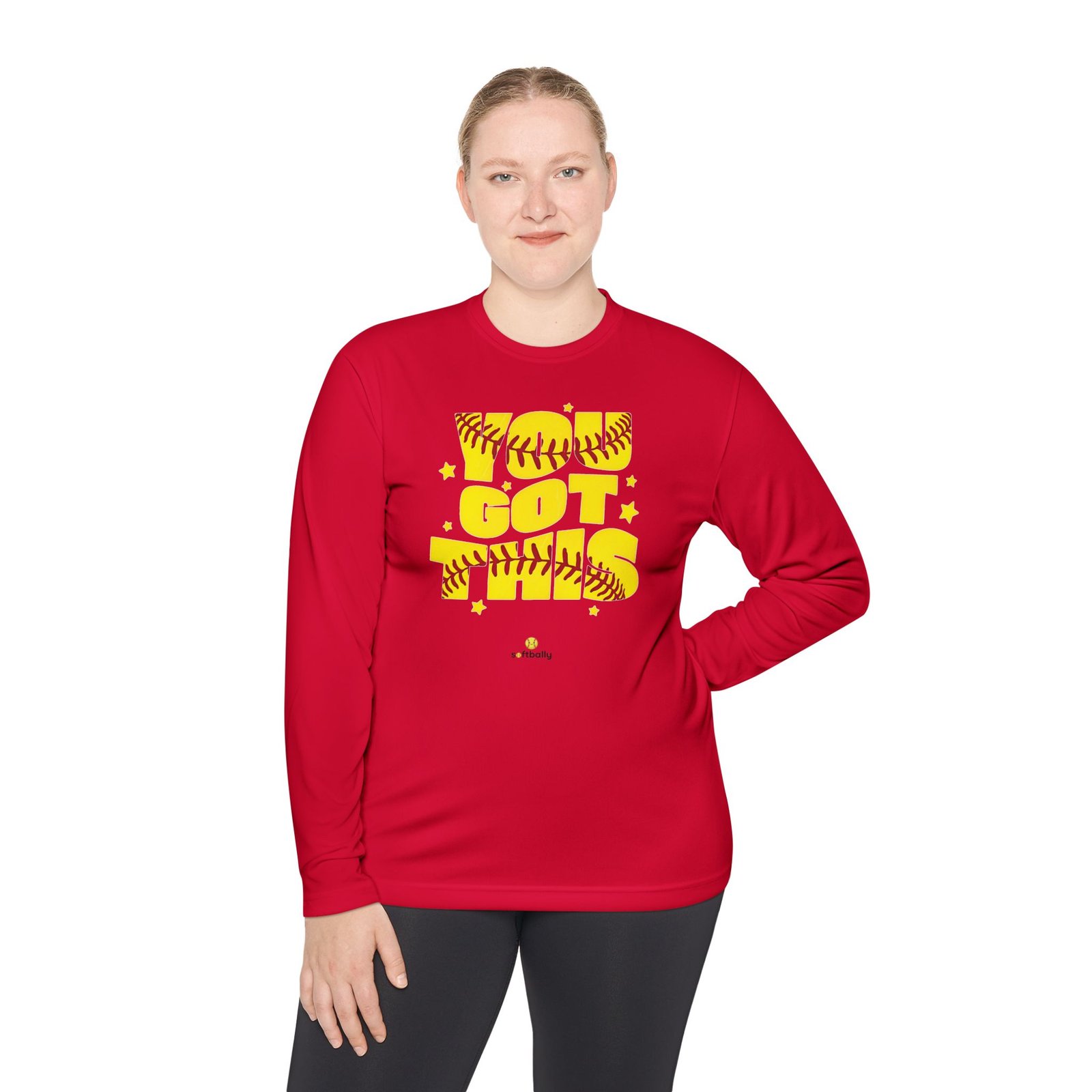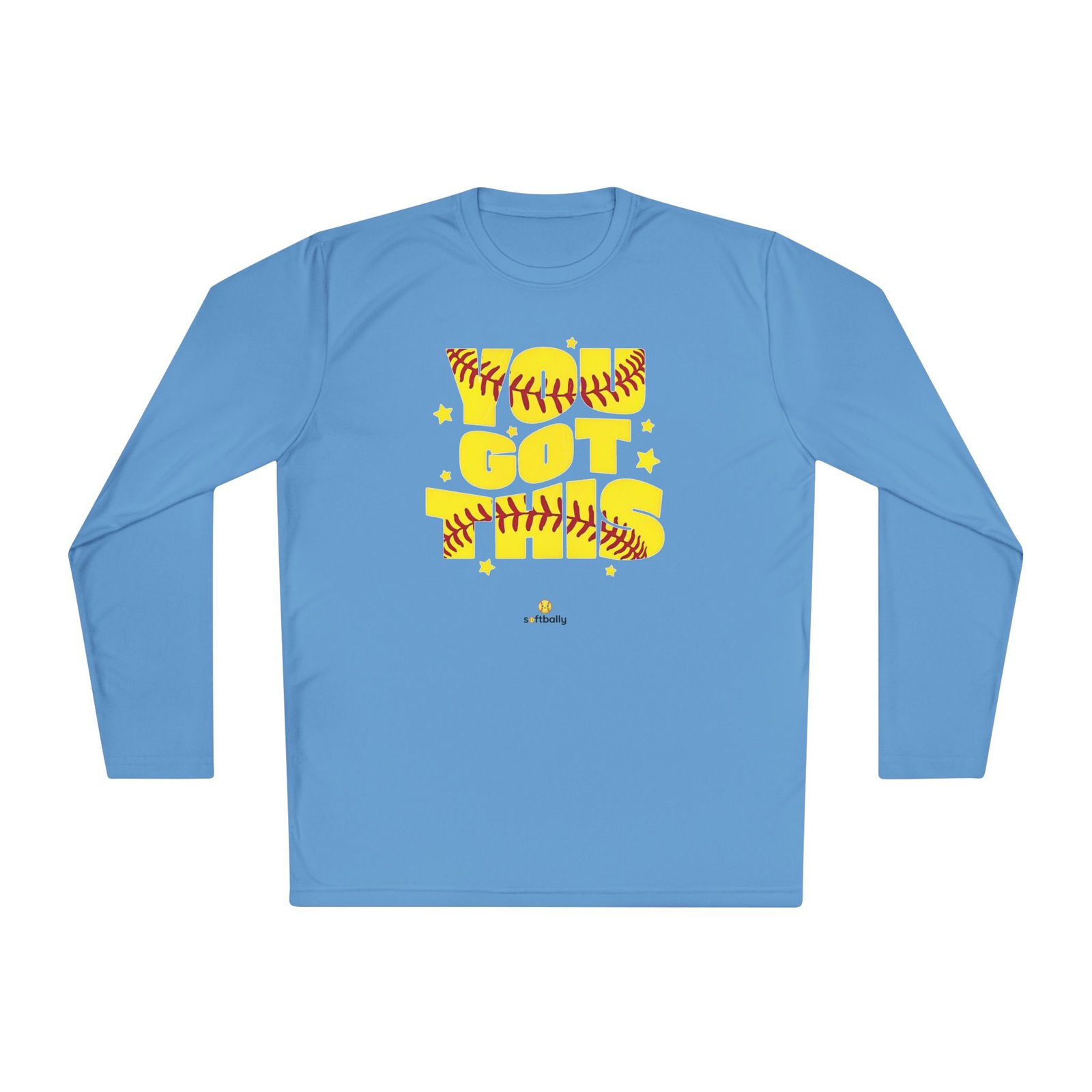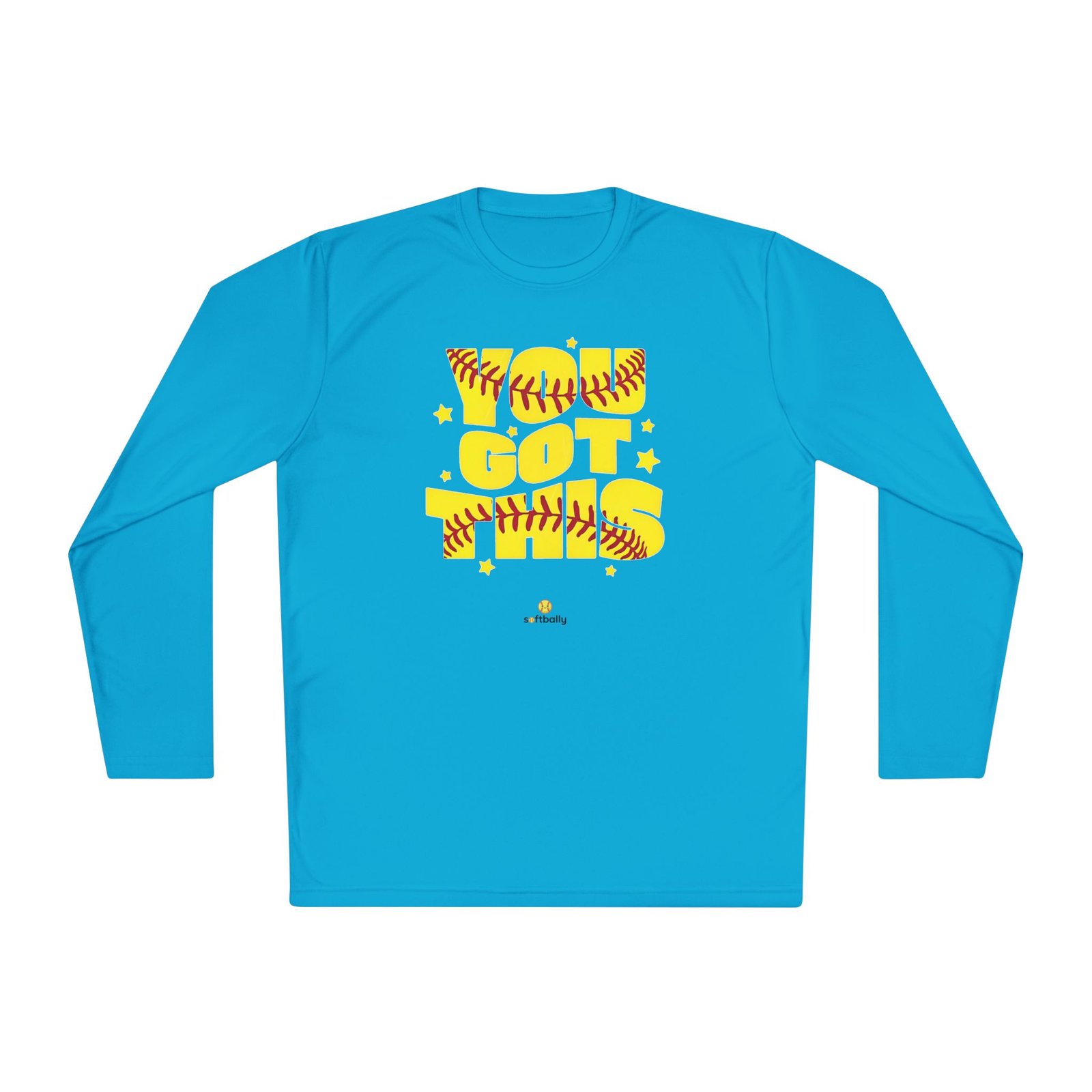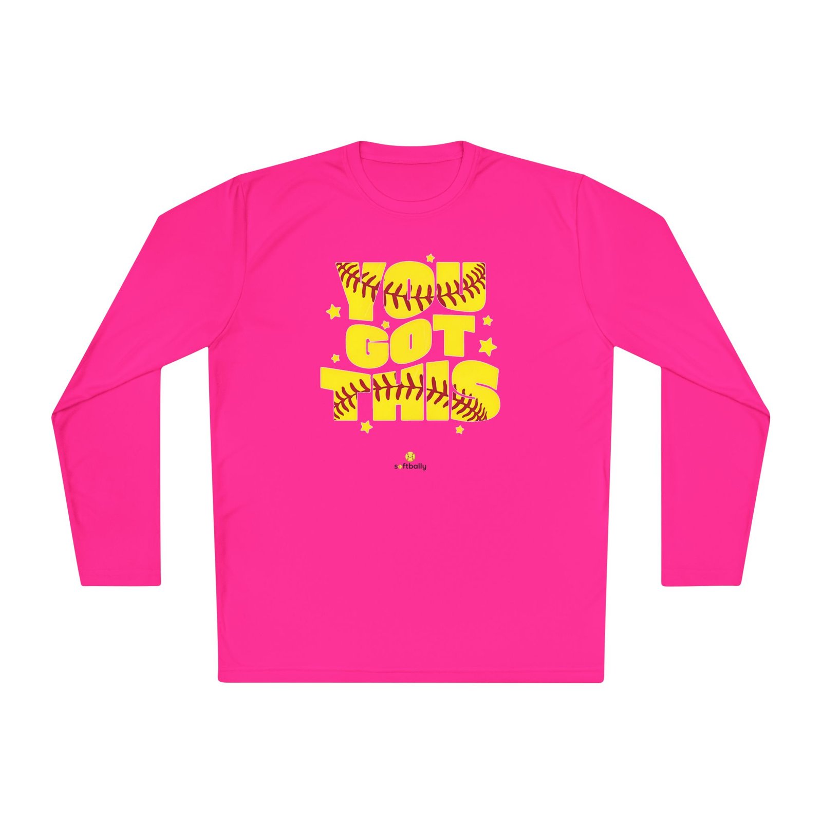 Lightweight and sporty, this unisex-fit long sleeve tee brings game-day energy to everyday wear. The bold yellow DTF graphic—woven with softball stitching and playful stars—reads like a cheer from the dugout. The airy 3.8 oz polyester feels barely there while the moisture-wicking fabric moves sweat away, so you stay cool during practice, runs to the field, or sun-drenched weekend tournaments. Double-stitched hems and a tear-away label keep the shirt comfortable and resilient through washes and play. Wear it layered under a zip hoodie or alone on warm afternoons; it moves with you and keeps the focus on the game.